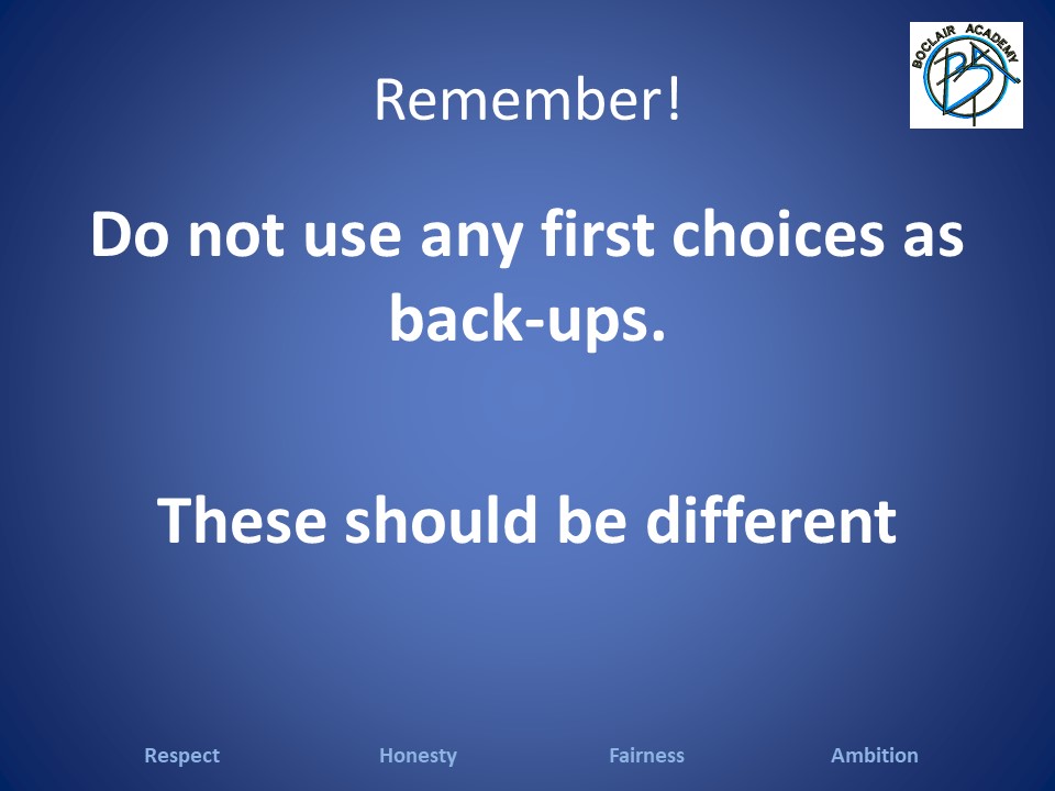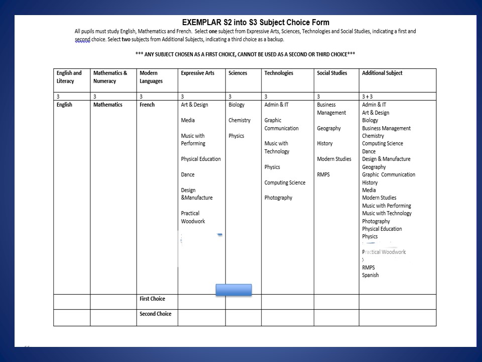S2 into S3 Mock Form - this form is for demonstration only. Each pupil will be issued with a personalised form to complete with their choices.